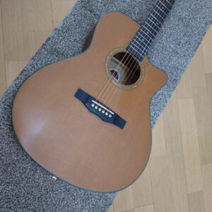 トップのシダー材もアコギによく使われるスプルース材よりやわらかく温かい…などのいわれる特徴があり、温かい音を出してくれる傾向のあるマホガニーサイドバックと相性よく響いてくれるのではないかなと思います。